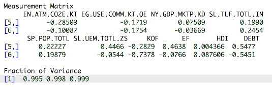 One question you might have is how important DEBT is to the French Economy. If we include DEBT in the Measurement Matrix (below) is doesn't become important until the Fifth and Sixth components and explains under 0.3% of the variation.